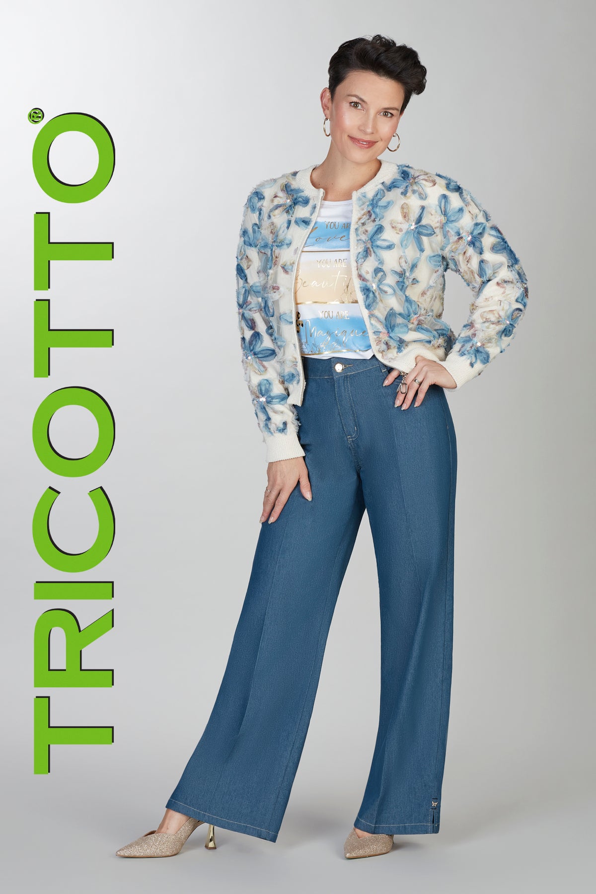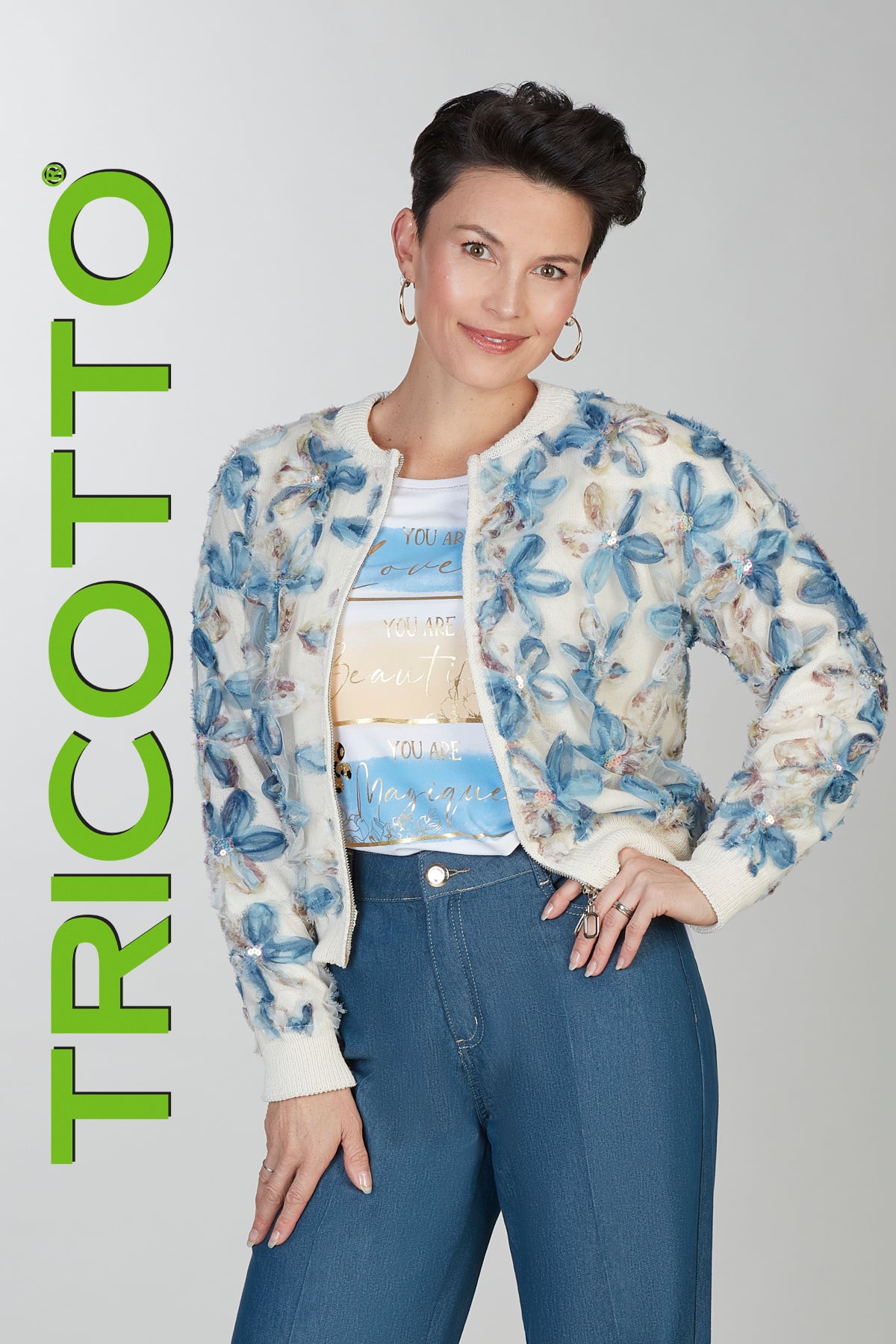 Veste bomber en tricot texturé haut de gamme avec imprimé floral à paillettes. Fermeture éclair sur le devant et au dos avec imprimé floral.